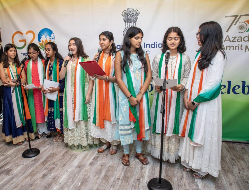 “The commemoration of 75 years of Independence being marked as the ‘Azadi ka Amrit Mahotsav’ culminate, and the country continues her march into the Amrit Kaal- the journey into the next quarter century, towards 100 years of independence,” Ambassador Sandhu emphasized. He remarked that this year’s Independence Day celebrations are special as it coincides with India’s G20 presidency, which is guided by the ethos of ‘Vasudhaiva Kutumbakam.’