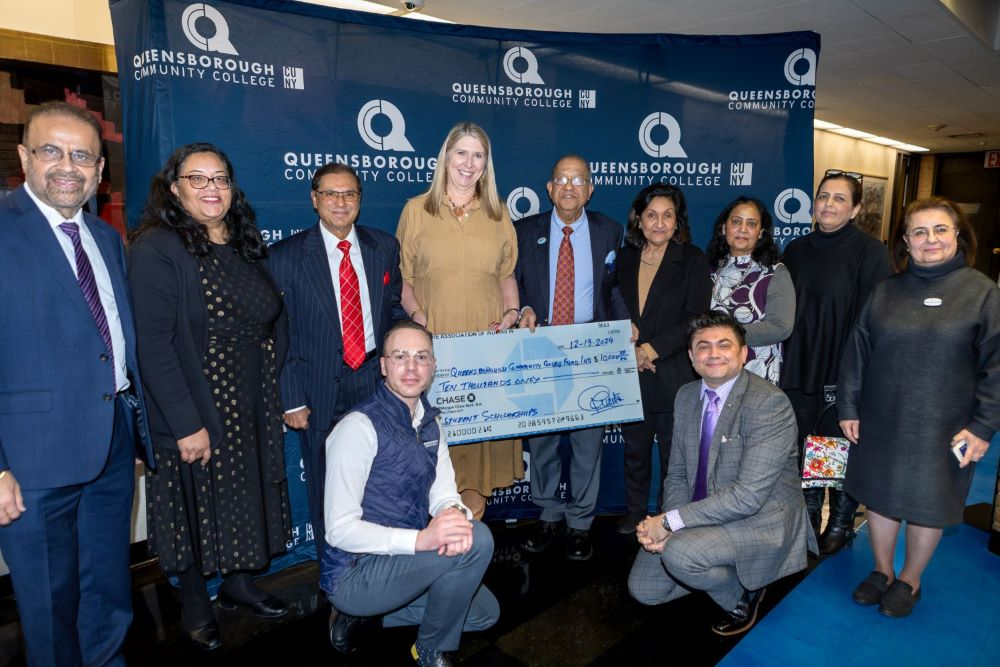 AIA-NY’s leadership proudly presented the check to QCC President Dr. Christine Mangino, reinforcing their commitment to future cultural collaborations, including the celebration of Holi this spring and Diwali later in the year.