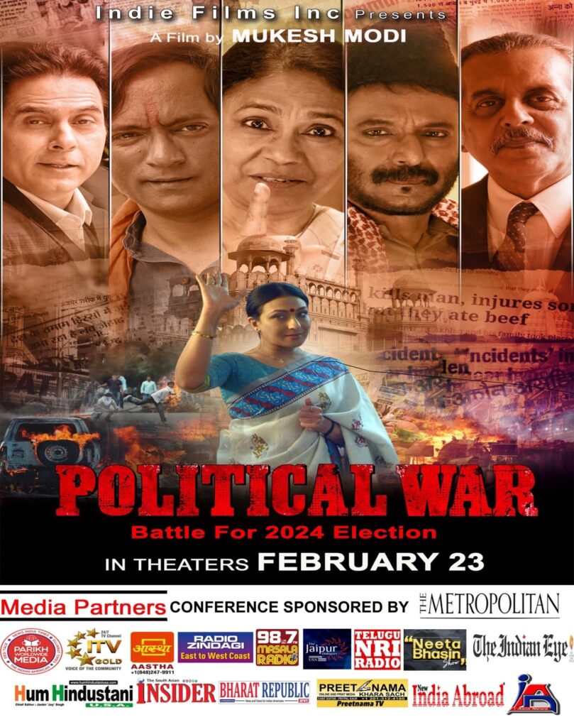 Indian American community gathered here to support the press conference for the new Bollywood Hindi film ‘Political War”. Amongst the global press covering the event were Preetnama TV, Bharat Republic, Jaipur Dialogue, Hum Hindustani USA, TV Asia, Parikh Worldwide Media, ITV Gold, Jus Punjabi, Aastha TV, Radio Zindagi, Neeta Bhasin show and The Indian Eye.