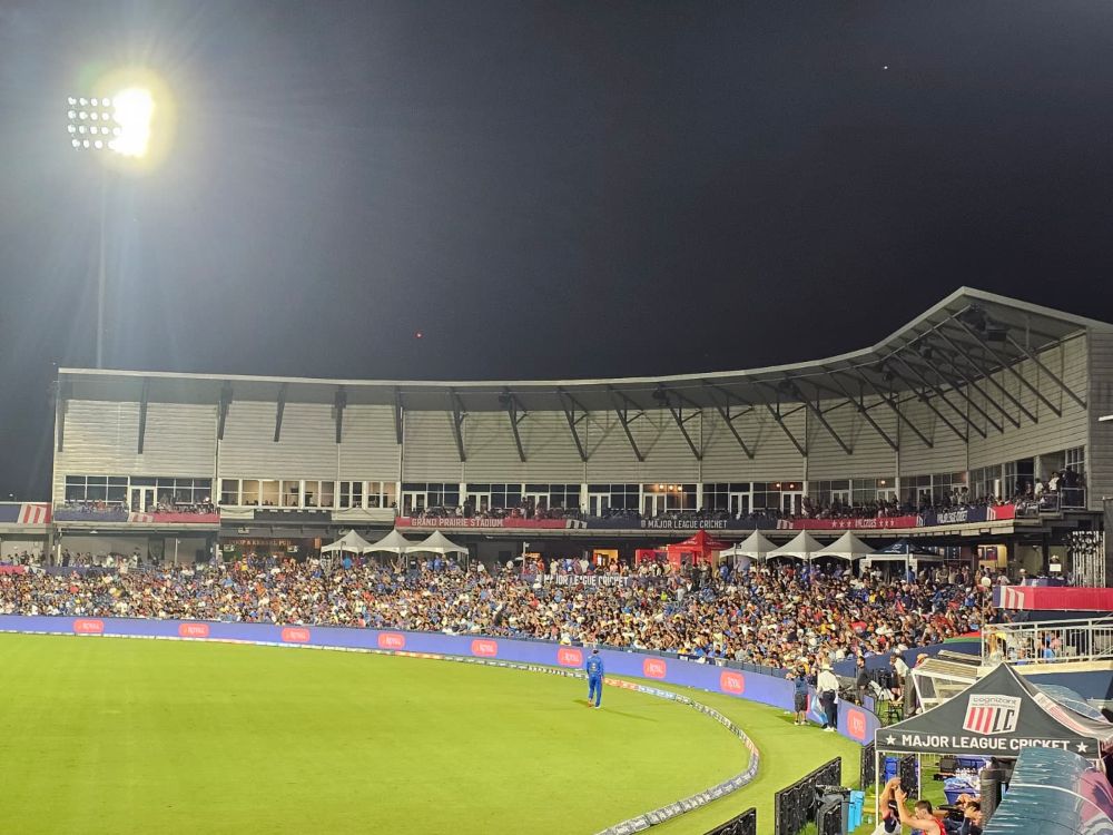 A packed stadium with a beautiful Cricket ground was a treat to watch in the day-night match. Mumbai Indians NY seemed to be the favorite to win as crowd cheered and applauded their performance while batting first.