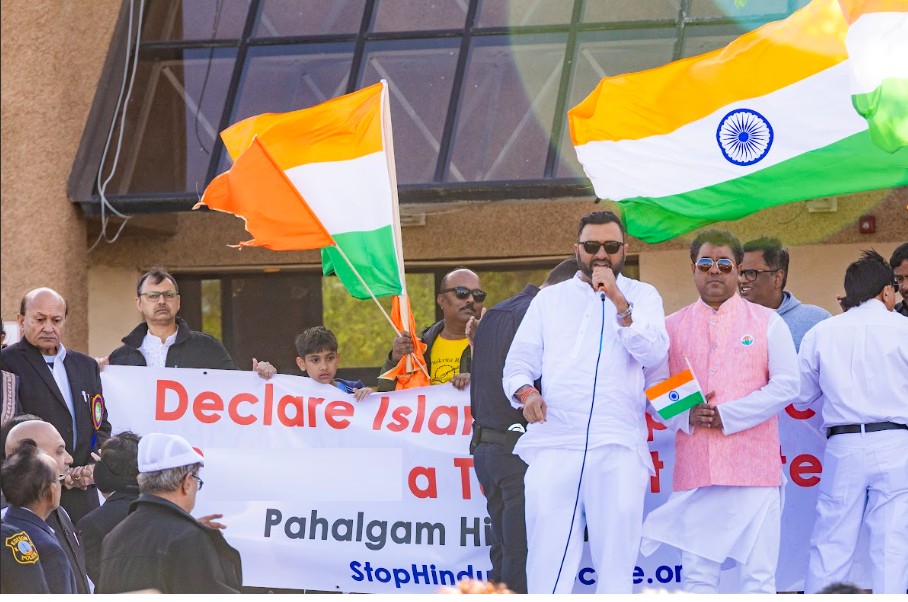 Among other community speakers, Dr. Mukund Thakar – Vice Chairman, FISANA, Bimal Joshi-Former EDO Chairman, Tuhin Pandya – Golden Era, BJP Chapter of New Jersey (OFBJP) Amar Goswami and Krishna Reddy, Ganesh Ramakrishna of HSS USA, Nikunjbhai- Hindu CoHNA, SVAJAN Chairman Nalin Shah and President Mehul Shah, IBA President – Dhiren Amin, Global Kashmir pandit diaspora – Anil Kachroo, Vishva Hindu Parishad – Jay Bansal, OHM Kriya Foundation – Raj Laxmi, Vegan Vison – H K Shah, IASONJ – Rajubhai Shah, Umiyadham – Harshad Patel, Hemant Bhatt -AARC, BAPS, Vipul Signs, Honest Restaurant, and many more Hindu organization groups associated to stand and provide support in this tragic attack despite all the discomfort and anger against the terror attack.