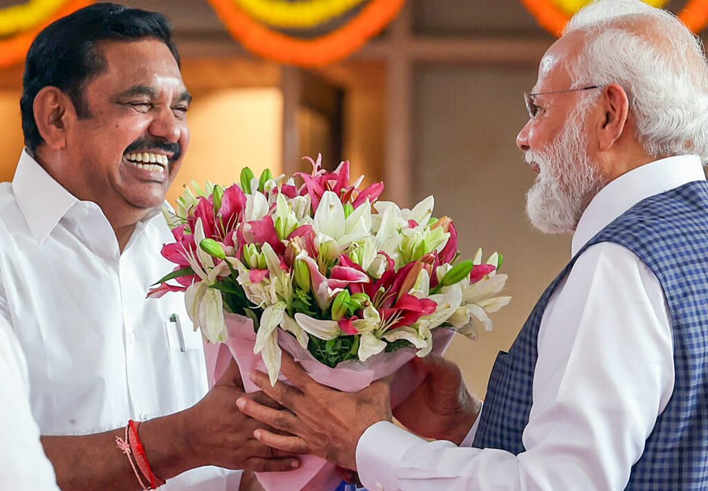 Prime Minister Narendra Modi with AIADMK General Secretary Edappadi K. Palaniswami at a National Democratic Alliance meeting in New Delhi (ANI)